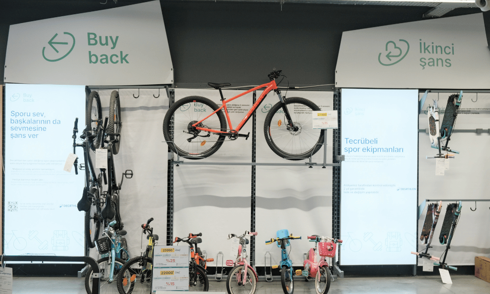 Decathlon Türkiye olarak, Buy back ve İkinci Şans hizmetlerimizle müşterilerimizden geri satın aldığımız spor ekipmanlarını atölyelerimizde uzman ekiplerimizle yenileyerek, yeniden kullanıma kazandırıyoruz. Bu hizmetlerimizle geçtiğimiz yıl 50 binden fazla ürüne ikinci bir şans verdik. Böylece hem ürünlerin ömrünü uzatıyor hem de sporu daha erişilebilir hale getirmeye katkı sağlıyoruz.