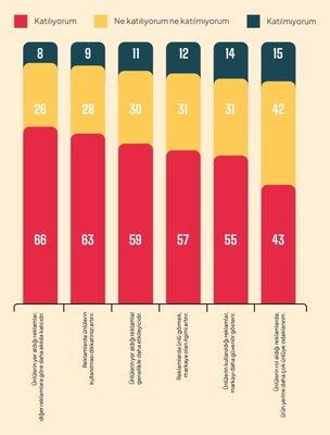 Öte yandan, ünlülerin reklamda yer alması tek başına yeterli bir etki yaratmıyor. Katılımcıların yalnızca yüzde 43’ü, reklamlarda ürün yerine ünlüye odaklandığını ifade ediyor. Yani tüketici, ünlünün dikkat çekici varlığını fark ediyor ancak satın alma kararında ürünün faydaları ve marka ile kurduğu bağ belirleyici oluyor. Bu tablo, ünlü kullanımının doğru kurgulandığında markayı daha samimi ve güvenilir gösterebileceğini, yanlış kurgulandığında ise algının zayıflayabileceğini ortaya koyuyor.